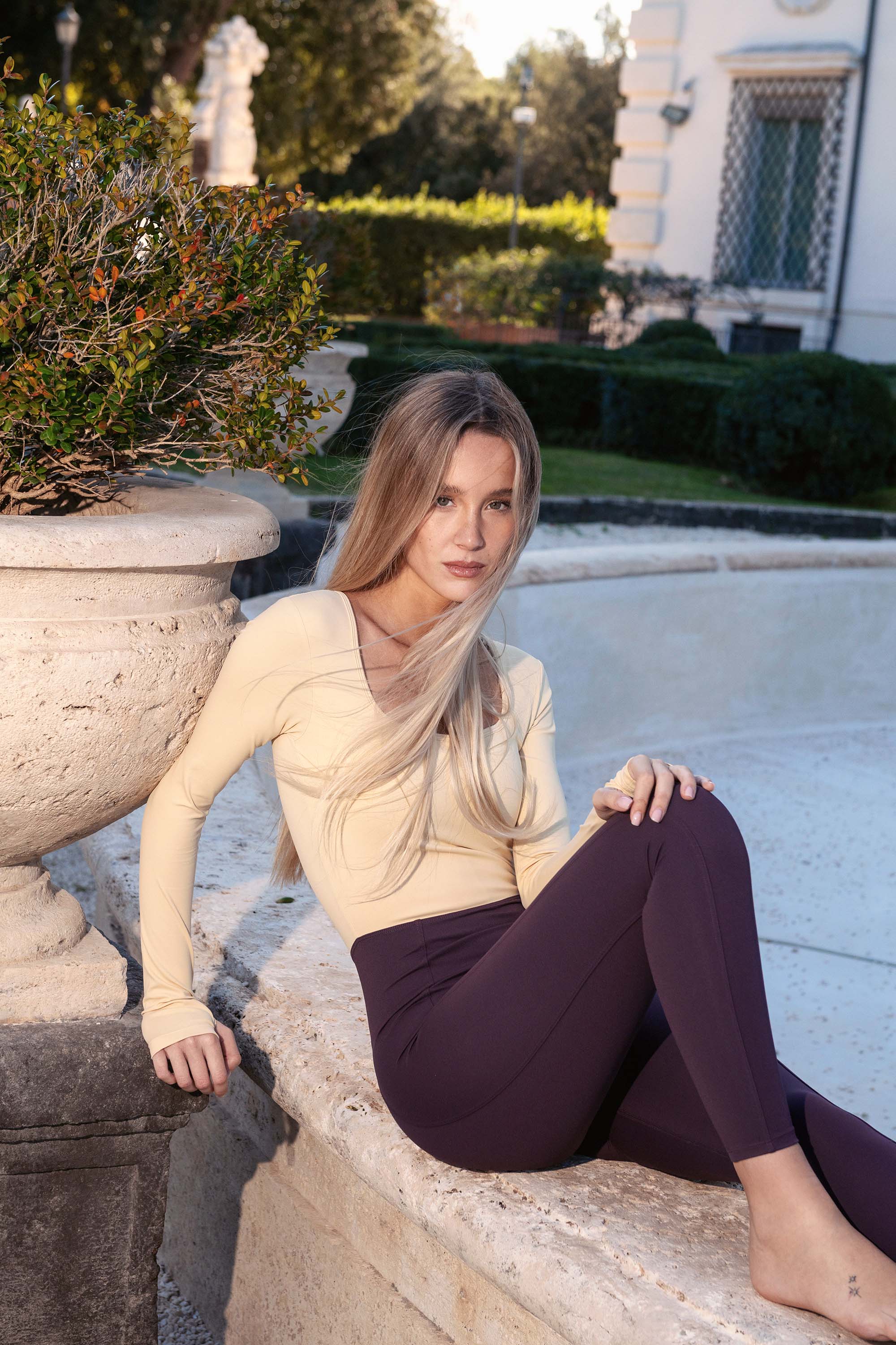 • Lavaggio: Lavare a mano in acqua tiepida, al rovescio, con detergenti delicati. Trattare il capo con movimenti leggeri per preservarne struttura ed elasticità.